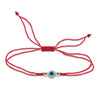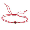 Pulseras en hilo rojo o negro de 0.5 mm (adorno) y 0.65 mm (tejido), con ojo de cristal rojo de 4 mm y detalles en goldfilled de 2 mm. Ajustables de 15 a 18 cm. Diseños hechos a mano que equilibran estilo y protección